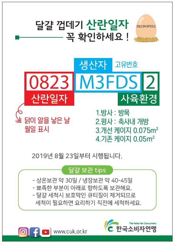 신선하고 안전한 달걀 선택하려면 산란일자 확인하세요!!